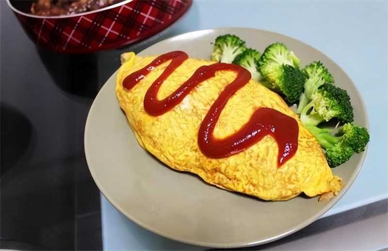 日式蛋包饭是很多人都喜欢的一道美食,把鸡蛋煎成饼,然后把炒好的饭裹成一团,在上面再挤上番茄酱,营养比较丰富。