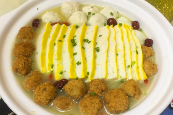 又叫“黄陂三鲜”,属地方传统佳肴,已流传数百年,将鱼丸、肉糕、肉丸这三大样合而为一,滑嫩松软,色香味美,颇受大众喜爱。