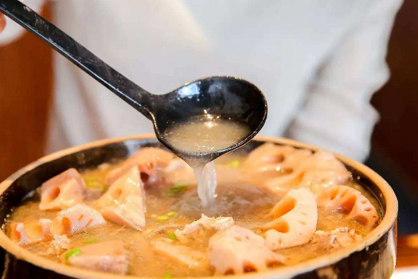 由排骨、藕等食材制成,汤汁鲜甜,藕质细腻,加上排骨含有丰富的蛋白质等多种微量元素,对人体有着极大的好处。