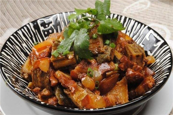蛏干烧肉是徽菜十大招牌菜之一,主要食材是猪肉和蔬菜配菜,还要加入竹蛏的干制品,增加这道菜的鲜美。