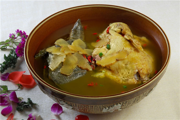 火腿炖甲鱼是安徽地区一道名菜,营养非常丰富,选用火腿肉或者火腿骨作为汤料,然后加入甲鱼慢炖。