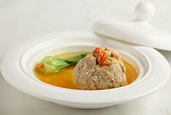 蟹粉狮子头是源自江苏扬州地区的经典名菜,狮子头是用蟹肉和猪肉制成的,做法非常多样,可以用来红烧、清蒸、水氽、油炸,味道松软可口,肥而不腻。