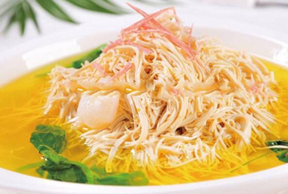 大煮干丝这道菜源自江苏扬州,是江苏的经典名菜之一,这道菜食材丰富,配料还会根据季节的变化有所不同,而且非常讲究刀工和火候,吃起来味道十分鲜美可口。