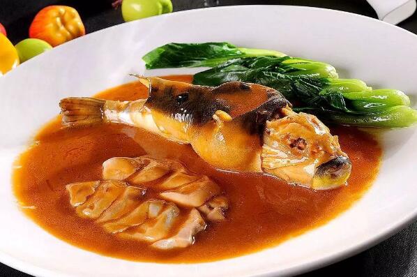 红烧河豚是以河鲀、五花肉、鲜笋等食材制作的一道江苏特色名菜,这道菜配料丰富,营养价值高,吃起来也是鲜嫩可口,是江苏十大经典名菜之一。