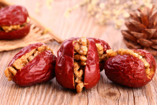 顾名思义,就是红枣夹核桃,既有红枣的清香,又有核桃的脆口,有补气养血之功效,重点是吃起来格外的方便,但是这两种食物的热量都偏高,不宜食用过多。