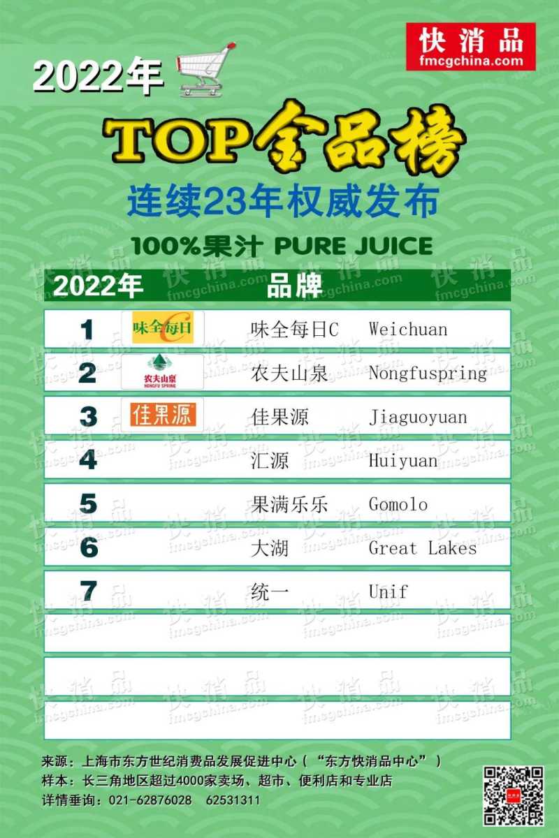 (快消品独家讯)由东方快消品中心同行业领先的全媒体——《快消品(网)》2022年对长三角地区超过4000家的卖场、超市、便利店和专业店等线下主要渠道进行大数据零售监测,连续第23年独家权威完整发布“大快消TOP金品榜”,涵盖近230个大快消品类,被誉为“行业风向标”!欢迎持续关注《快消品(网)》全媒体(fmcgchina)。