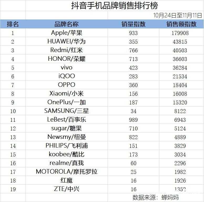 从品牌销售来看,抖音电商在双11期间也呈现其独有特点。南都联合第三方数据平台蝉妈妈,以10月24日至11月11日为时间范围,对抖音大家电、生活电器、女装、彩妆、美容护肤、美容仪、手机、运动鞋、零食六大品类的品牌销售额进行排名,并选取出各个品类的销售额前19至20名。