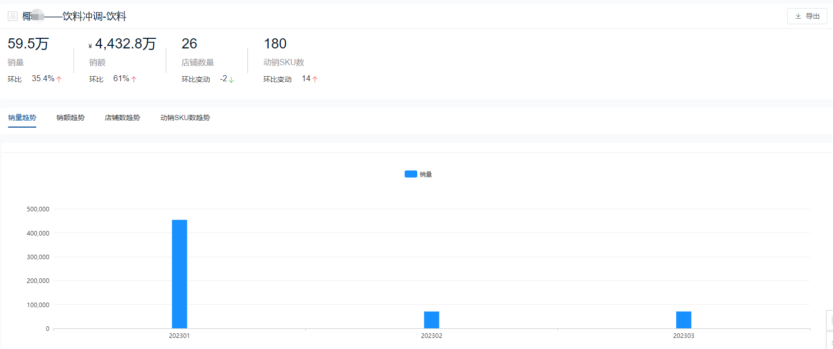 椰*牌在今年Q1季度的(京东)饮料品牌排行榜中位于第7名,销量约60万件,销售额约4400万元。