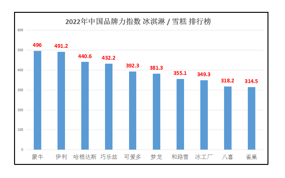 该品类的排行榜TOP3是:蒙牛、伊利、哈根达斯,与去年相比排名无变化,蒙牛连续5年蝉联冠军。