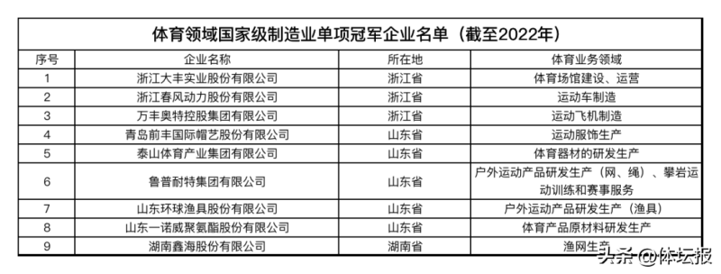 体育领域国家级制造业单项冠军共有9家企业,我省占据三席,分别是: