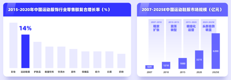 尽管在过去一年,业绩下滑、关闭门店甚至退市是服饰行业里频现的词汇。但拉长时间线来看,从本世纪初起随着中国经济快速发展,国内运动鞋服行业经历了高速增长。