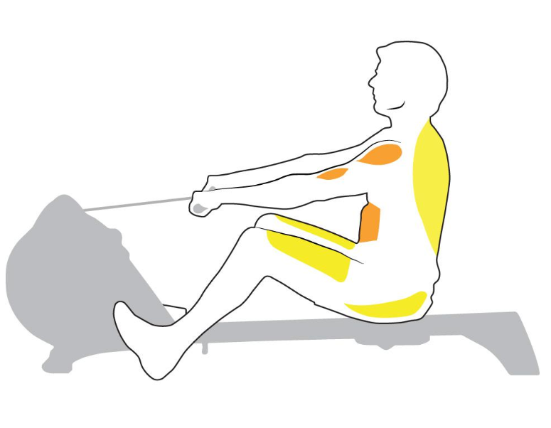 划船机覆盖较广,可以锻炼背部、腿部、臀部、核心及整个胳膊的肌肉。