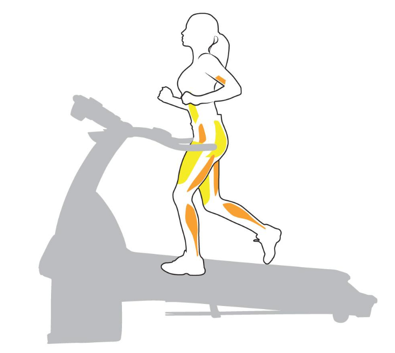 跑步机跑步机主要锻炼腿部(大腿和小腿)、臀部、核心的肌肉,对手臂也有一定的锻炼:
