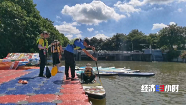 除了球类运动,水上运动在这个夏天也火热起来。在一些城市的公共水域,桨板这项只要一次性投入一两千元,就能置办好全部装备的运动,得到很多人的青睐。
