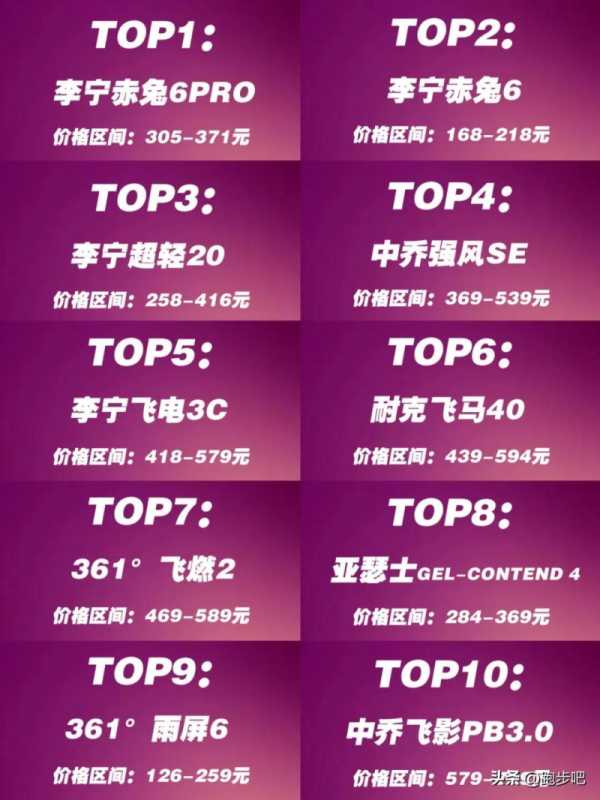 跑鞋销量排行榜(大数据),它们都口碑好、适用广、性价比高