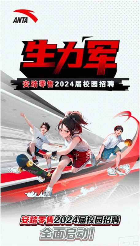 日前,安踏集团启动2024年校招,招聘包括零售运营岗、零售支持岗、新零售营销岗等四个类型岗位共计330+人次。