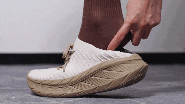 鞋面网纱+中底通风气道,35℃高温穿一天不闷脚,很适合汗脚体质。弹力袜套设计, 穿鞋比脱单还简单!▼▼