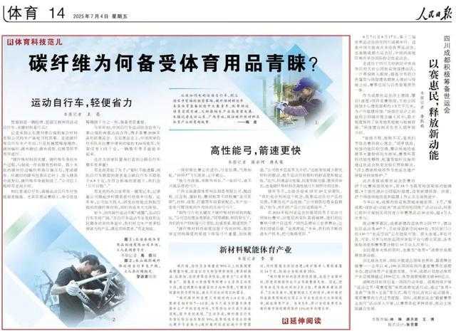 从疾如闪电的运动自行车,到上演百步穿杨的射箭赛场,碳纤维材料近年来在体育装备制造中大展身手,既帮助运动员实现突破,又助推相关产业高质量发展。本报记者走访山东、广西等地,探访碳纤维材料在体育产业的有趣故事。