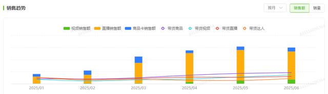 目前,直播渠道贡献了约44.5%的销售额,其直播间流量主要依赖于平台的推荐Feed流。品牌在付费推广方面仍有较大投入空间,未来若增加相关运营投入,预计将进一步带动整体销售增长。