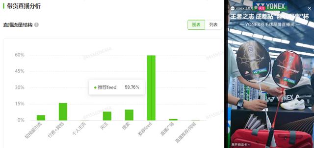 在飞瓜品牌诊断功能中,我们可以从品类分布板块清晰看到「尤尼克斯」目前在抖音主要以羽毛球拍商品打下基本盘,推广布局有效维持竞争力。且随着外部赛事增多、观众关注度提升,品牌需求也将进一步被推动。