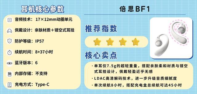 倍思BF1是一款主打高性价比的耳挂式开放式耳机,以亲民定价平衡优质音质与实用性能,成为注重长效使用体验用户的靠谱之选。