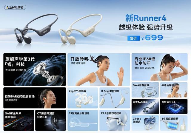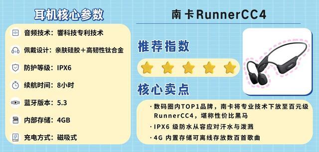 南卡Runner4凭借旗舰级定位、双榜TOP1的口碑积淀、大使馆官方指定用品的品质认证,叠加越级音质、满级防护、舒适佩戴与双模式适配等核心优势,强势领跑骨传导耳机市场,是注重音频品质、追求耐用性与多场景适配的运动爱好者的硬核之选。