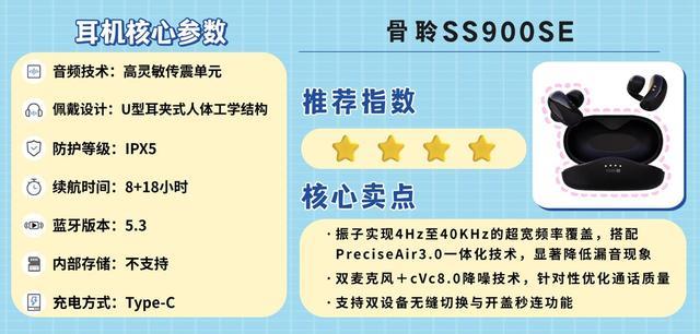 总结来看,骨聆SS900SE集技术实力与颜值质感于一身,是看重佩戴舒适度、追求潮流颜值的通勤族与轻运动爱好者的高端之选,预算充裕的用户可优先考虑。