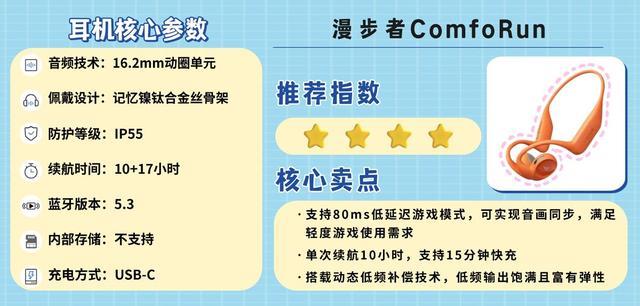 漫步者ComfoRun专为运动场景量身打造,以高性价比巧妙平衡实用性能,妥妥的热爱运动用户的理想之选。