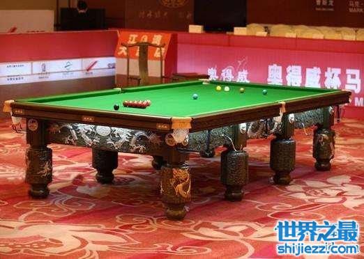 康泓牌台球桌,台球十大品牌之一的它是采用优先实木而制成,它的承重力比较大,而是比较坚固耐用的。也是配有高速台布,台球的走线也是比较平稳的。线条的走线也是非常的工整,还有它的实木雕花是由人工来完成的。