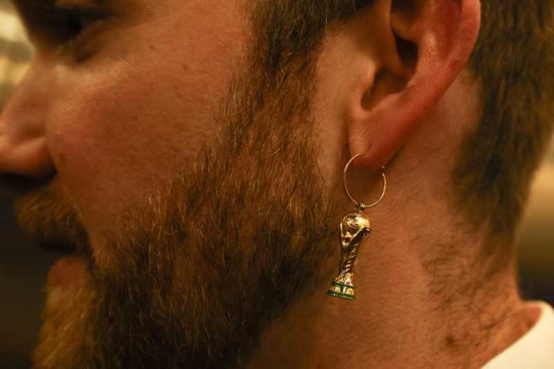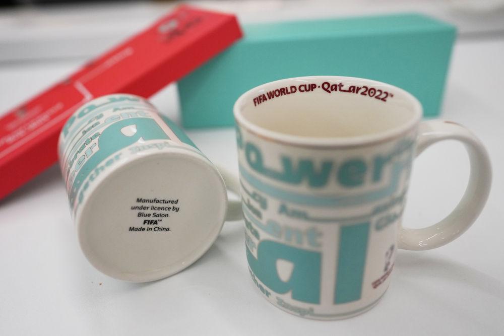 ↑这是12月1日在卡塔尔阿图玛玛球场拍摄的由中国制造的世界杯纪念杯。