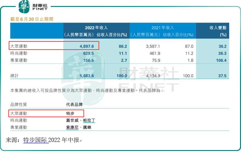 2022年中报显示,特步主品牌(大众运动)的收入为48.98亿元,如果在2025年要达到200亿元的目标,意味着特步主品牌接下来两年的收入增速将继续保持高增长态势。