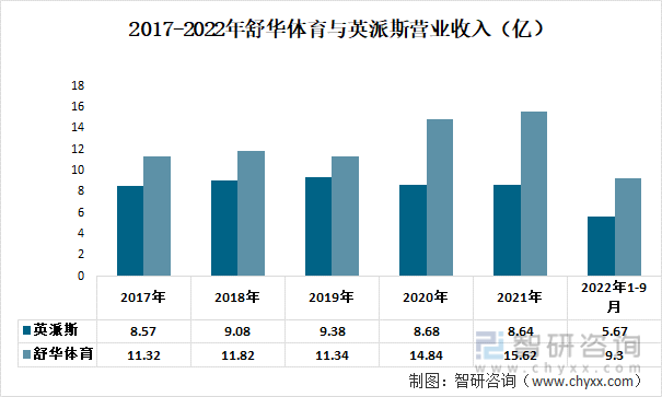 2017-2022年舒华体育与英派斯营业收入(亿)