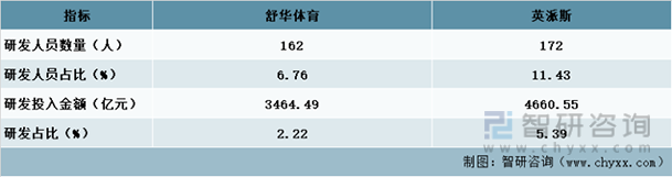 英派斯相比于舒华体育,对科研方面的投入更大,研发人员数量占比为11.43%高于舒华体育的6.76%;研发投入占比也为5.39%,超过舒华体育的2.22%。