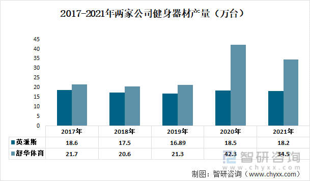 2017-2021年两家公司健身器材产量(万台)