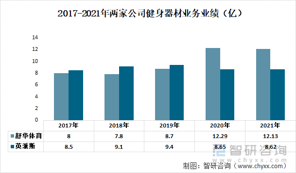 2017-2021年两家公司健身器材业务业绩(亿)