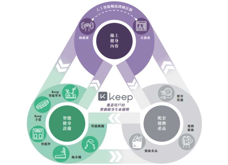 在跑出规模效应的同时,Keep也实现商业化落地,铸就另一道坚实壁垒。目前,Keep已经具备行业领先的系统服务能力,业务涵盖用户的整个健身生命周期。