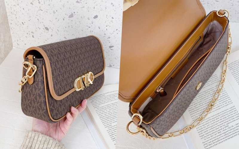 2022年秋冬季别MICHAEL KORS以全新Empire Logo金属配饰推出最新Parker系列包款,这款俐落简约的新款手袋是对一贯别致的单肩包最优雅的演绎,采用MK经典印花帆布和带有 Empire Logo金属配饰的翻盖封口,为整体包款创造流线型轮廓以及别致吸睛的样貌,包款内部空间极大,有一贴袋和拉链袋,另外附有两条可互换的肩带,一条是皮革款而另一条是金属炼带,能轻松创造多种携带及搭配方式。