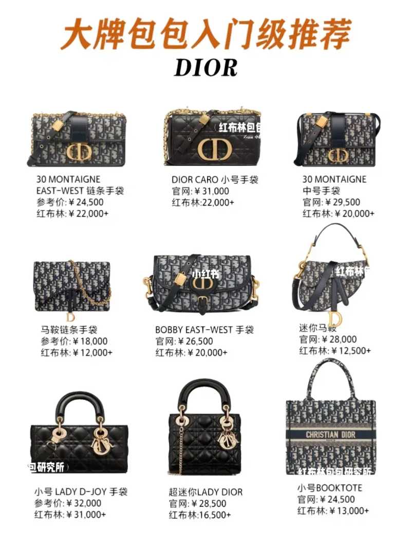 迪奥风格优雅、精致,老花辨识度也很高,推荐老花托特、马鞍、蒙田还有经典的三格戴妃。