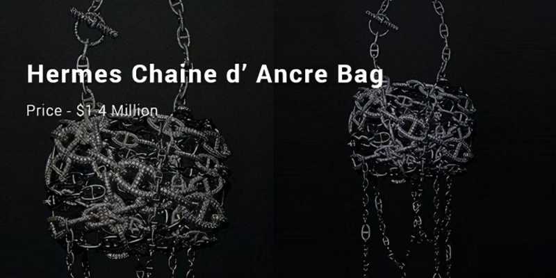 Hermes Chaine’d Ancre最受欢迎的奢侈品牌 Hermes 制作,由著名的 Pierre Hardy 设计。此收藏品是 Hermes Haute Bijouterie 系列的一部分。以 140 万美元的价格,它是世界上最昂贵的手袋之一。它是限量版系列的一部分,因为该品牌仅创造了三款如此精美的包袋。