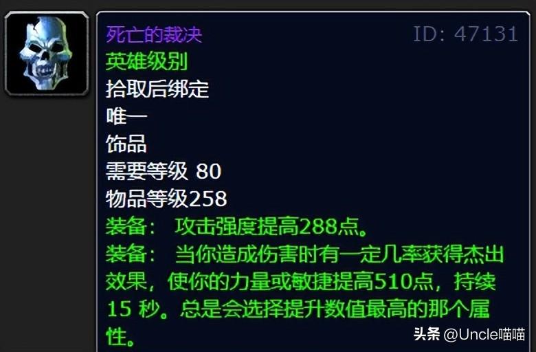 当然也有不少玩家拿他和死亡的裁决做比较,这个个人还是觉得仁者见仁智者见智的存在了,不过虽然说颅骨的爆击等级高,但是对于喵叔这样的玩家来说我个人还是偏向于常驻攻击强度的死亡的裁决,不知道屏幕前的你对于这两款