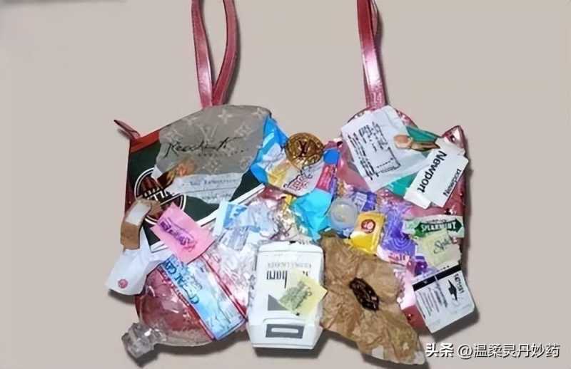 7.LV“城市符号”拼接包:包身点缀着各种城市垃圾,有烟头、茶叶包、矿泉水瓶、口香糖,一度被人称为史上最丑的包之一,价值90W。