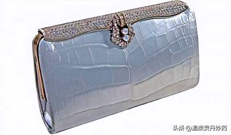 4.埃及艳后手袋:由稀有短吻鳄的皮镀银制作而成,镶有18克拉的白金和1500枚黑白钻石,每年只生产一只,价值263W。