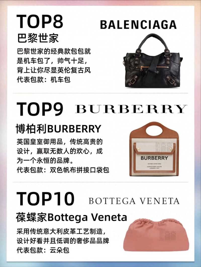 第八名:Balenciaga巴黎世家代表包款:帅气机车包第九名:BURBERRY博柏利