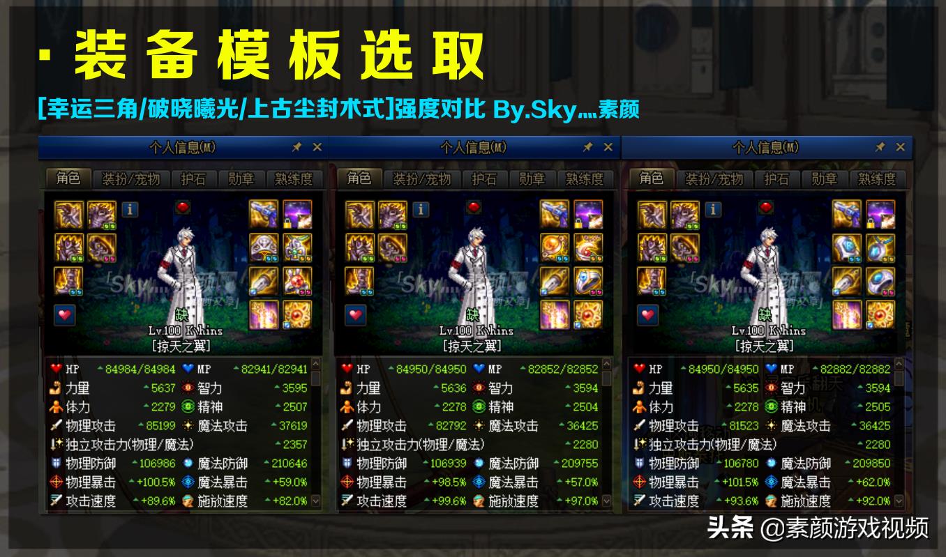 当然,除了职业三觉状态和装备打造水平,还有一个影响因素就是装备搭配。[幸运三角]套装由于主加技能攻击力,且其余属性数值的分配相对均衡,所以其强度定位受装备搭配的影响相对较小,无论在什么样的装备搭配下,[幸运三角]套装都可以保持一个较高的选择优先级。