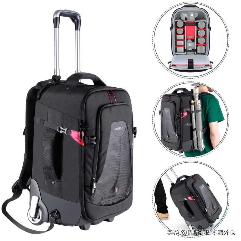 一个可靠的相机包,可以存储和保护昂贵的相机装备。它符合IP67防水标准,可以浸入1米深的水中长达30分钟,以防暴风雨时保护您的相机。耐用的手柄可以伸缩,轮胎可以平稳滚动,因此您可以轻松地随身携带。该产品还便于旅行,并且符合大多数美国航空公司的随身行李要求以及美国联邦航空管理局的最大随身行李尺寸要求。