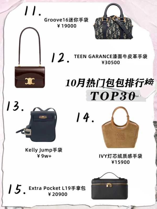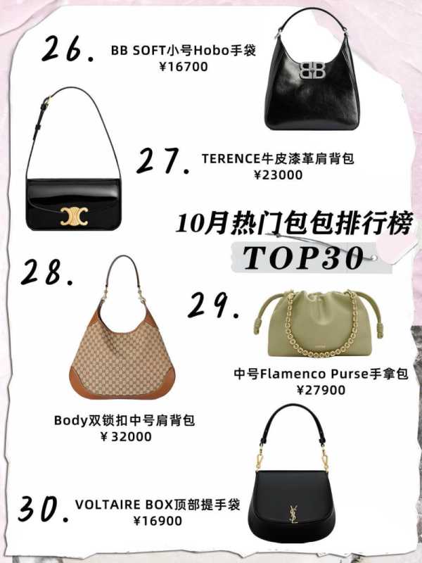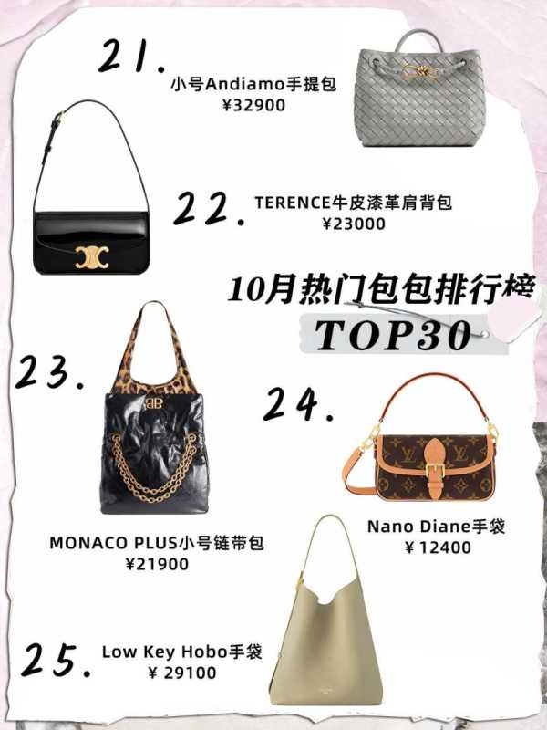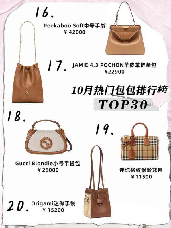 10月份最火的包包还是香*儿,24k的保龄球相机包是谁还没有,不过听说这个包也是要排好久,不是个vic也见不到面,不愧是榜单排名第一的包包,除了这个包还有很多热门包也在这次的榜单上,给大家总结TOP30的包包有哪些☝️
