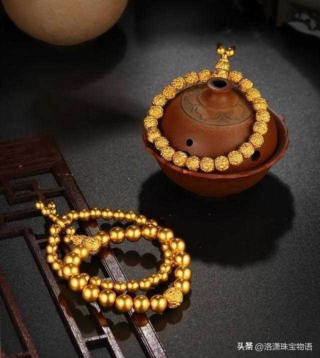 特点:由一颗颗实心古法金珠串成的手串,哑光质感,低调奢华,避免了传统黄金的“暴发户”感。佩戴舒适,且具有文玩的气质。