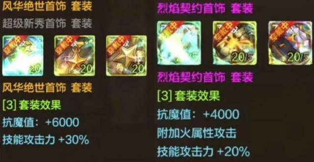 “风华套”自带超高三速和全程霸体;“契约套”则是纯纯的乌龟坦克套,而且自带火属性攻击。