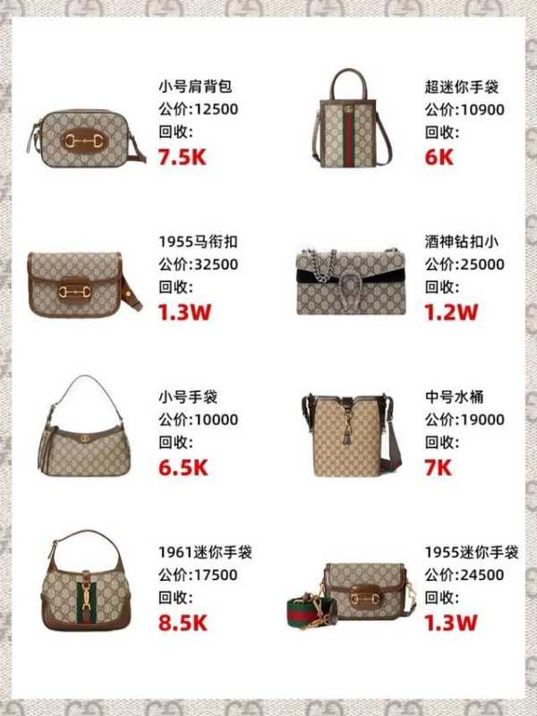 古驰的经典款式,如1955马鞍包、酒神包、马蒙包等,这些款式在二手市场上的流通性较好,回收行情相对稳定