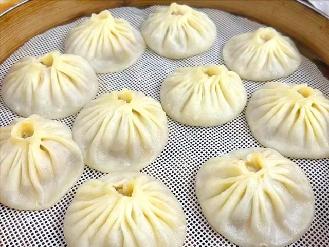 包好的灌汤包上锅蒸制12-15分钟即可,出锅后,褶纹清晰,分布均匀,造型美观,轻轻提起来,可感受到内部的汁水晃动,吃起来咸香适中,口感醇厚。